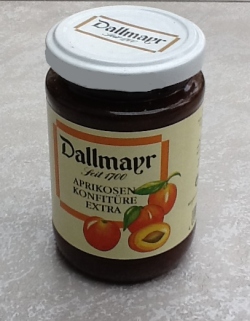 Ah, and look at the picture. As she's so detail-oriented she even used a jar from a commercial apricot jam (Aprikosenkonfitüre) that she had bought sometime ago to make it perfect.